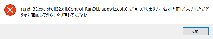 例えば、次のコードは「プログラムの追加と削除」を開くコマンドですが、
