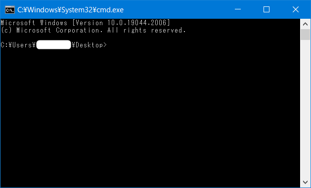 ShellExecute(“cmd”) で開くと画像のように現在のユーザーのデスクトップが表示されています。